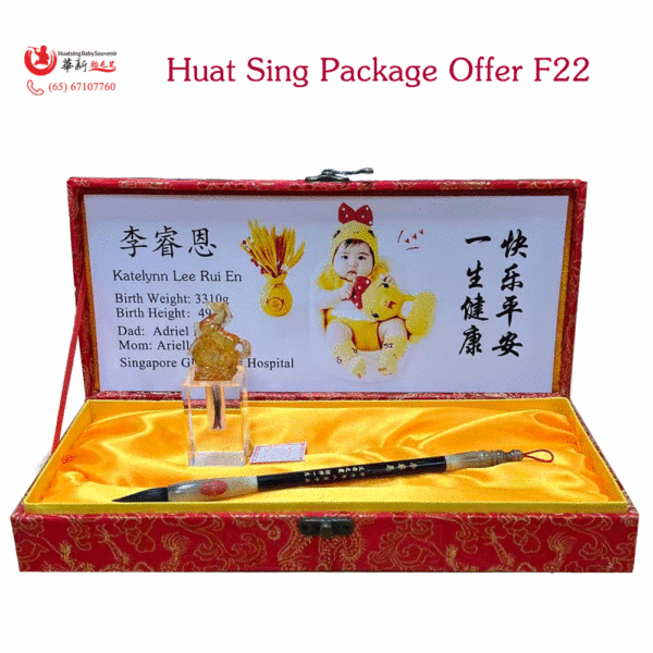 3. 红色锦绒配套盒配金箔宝宝信息。