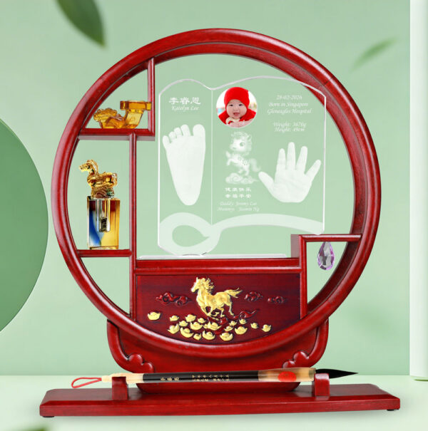 2.Liuli Horse umbilical cord stamp, containing baby umbilical cord/baby hair, engraving baby name on the bottom.